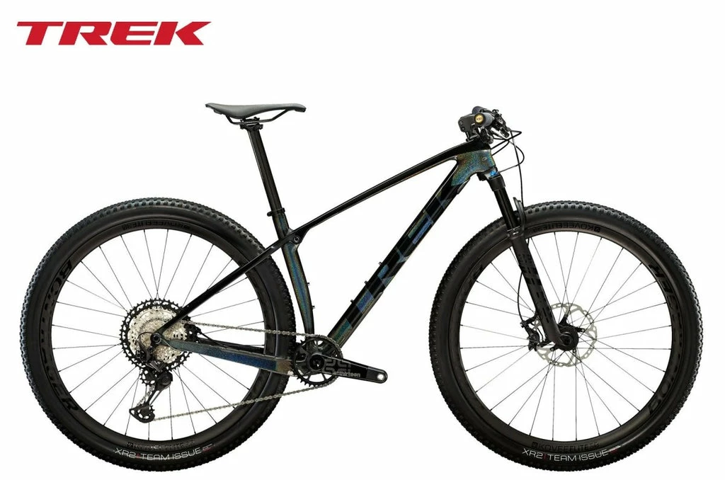 Einen leichten und steifen Carbonrahmen mit trailglättendem IsoSpeed, eine leichtgewichtige FOX Step-Cast-Federgabel mit Remote-Lockout, einen extrem geschmeidigen Shimano XT-Antrieb mit extraleichter, extrasteifer Carbonkurbel, einen Carbonlenker, eine Carbonsattelstütze und extrabreite, extraschnelle Bontrager Kovee Elite 30-Carbonlaufräder samt Rapid Drive-Hinterradnabe für eine verzögerungsfreie Beschleunigung von der Startlinie weg.